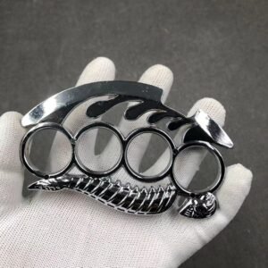 Material: zinc alloy (the knife is ordinary 45# tool steel, with electroplating treatment on the surface)Size: 11.8cm in total length when opened (see detailed picture, the size is measured manually, if there is any deviation, please refer to the actual situation)Blade length: 3.6cm Whether it is sharpened: not sharpenedWeight: about 152 gramsPackaging: neutral transparent OPP bagColor: black, silver gray, brass, bronze silverFunction: suitable for martial arts fighting defense and life-saving, almost no special training is required to master it. Suitable for outdoor travel, self-driving travel equipment, emergency first aid in critical situations, it is a very practical product for home travelPrecautions: The knife is not sharpened and needs to be sharpened by yourself. The knife is very small and is only suitable for emergency use. The knife has no lock buckle, please use the knife alone after opening. You need to close the knife before you can grasp and use the fist buckle (to avoid cutting yourself)Remarks: The surface of the product is electroplated. The black one is spray-coated. There will inevitably be slight scratches and mold marks on the surface of metal products, as well as polishing marks. Please be careful if you mind! There will be contact marks on the inner edge of one of the finger holes during factory electroplating and black spray-coating. Please be aware!Tirapugni, fibbia a pugno a quattro dita per attrezzatura per auto in osso bianco addensato – tirapugni