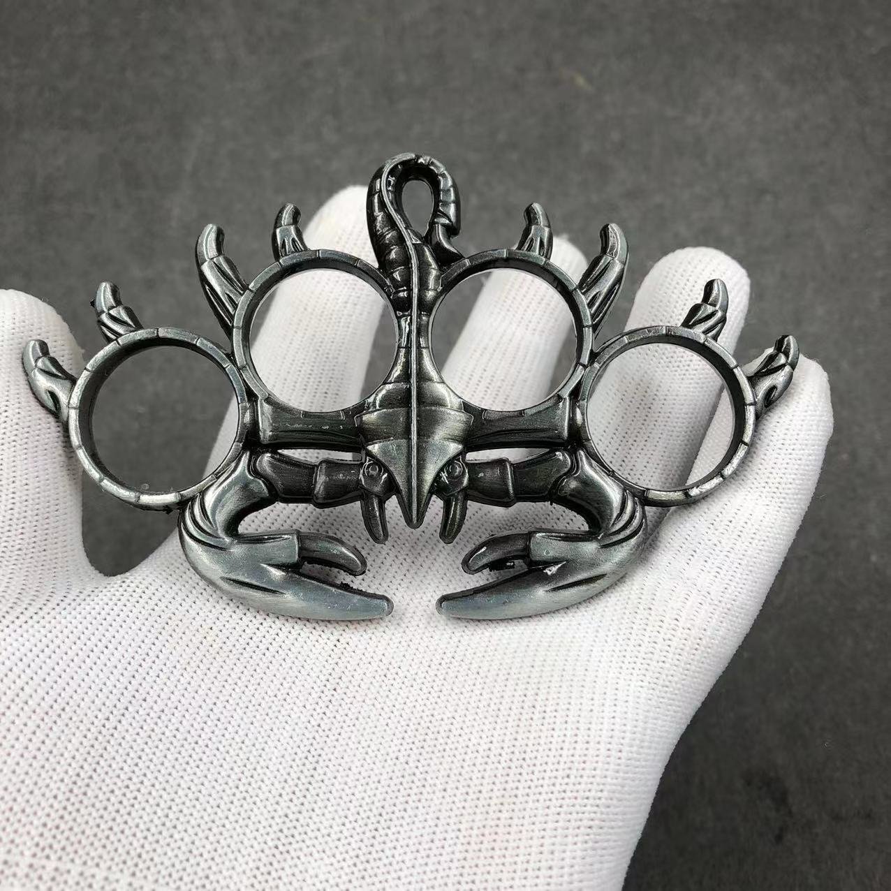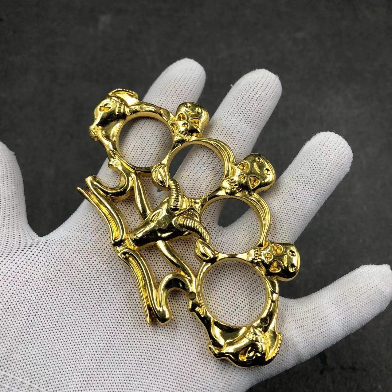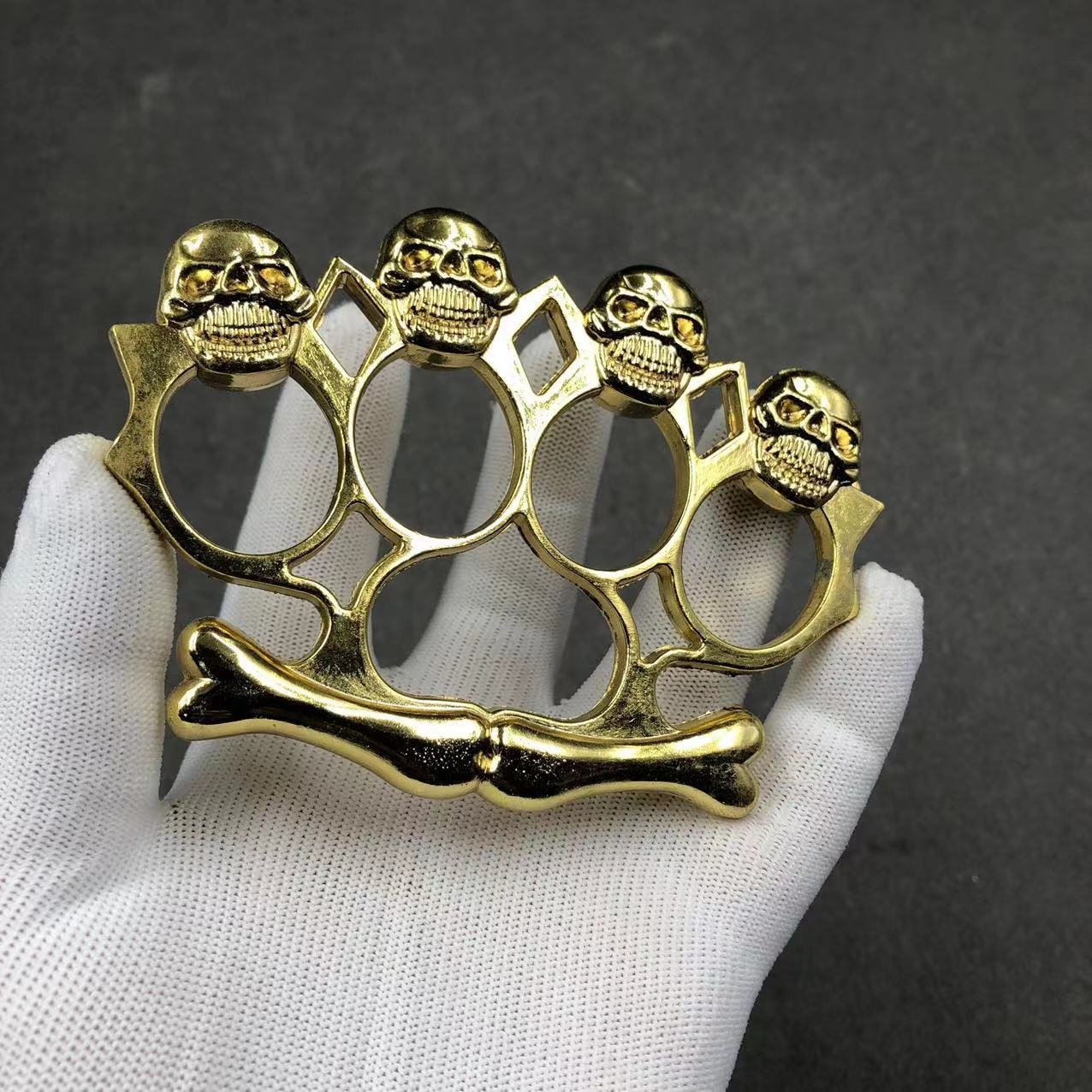 Name: Thickened Four-Finger White Bone Ring--Knuckle DusterMaterial: Zinc AlloySize: Product length about 112mm height 65mm thickness 10mmFinger hole diameter: 23mmWeight: about 128 gramsPackaging: Single transparent neutral OPP bag packaging