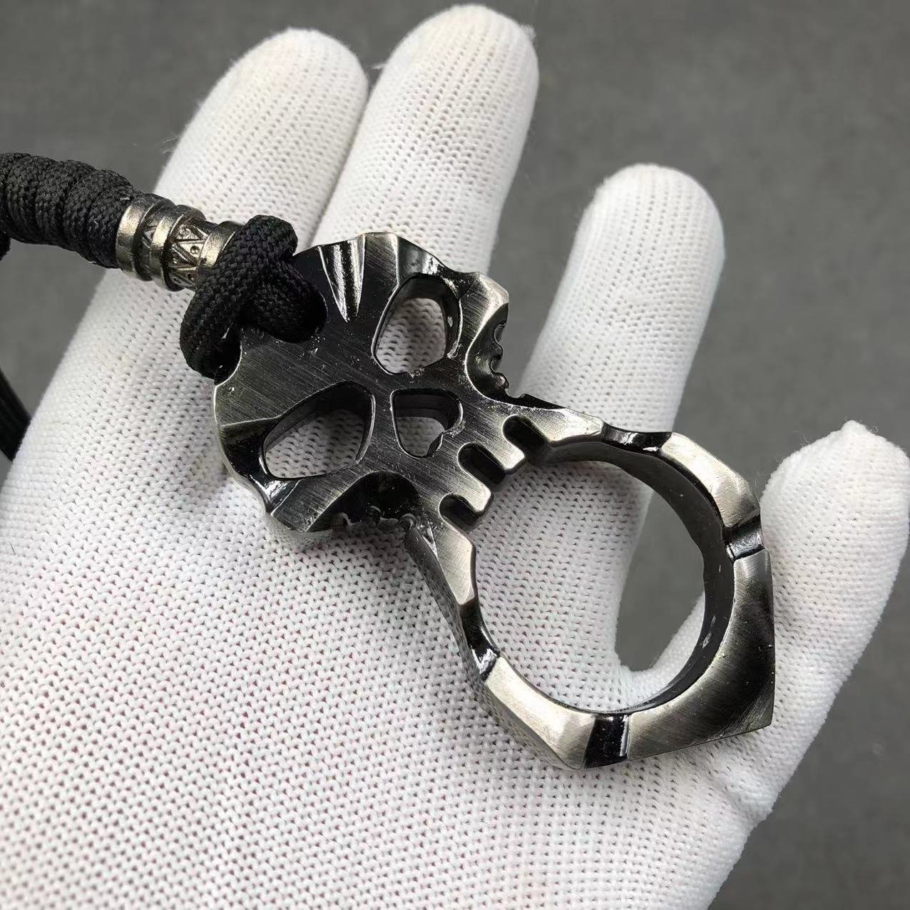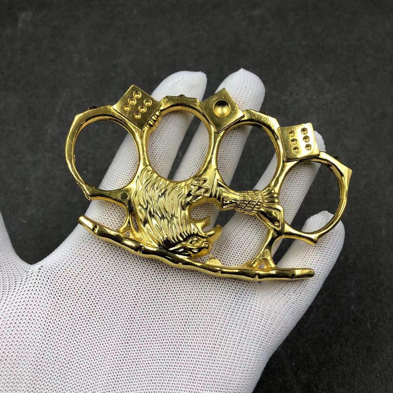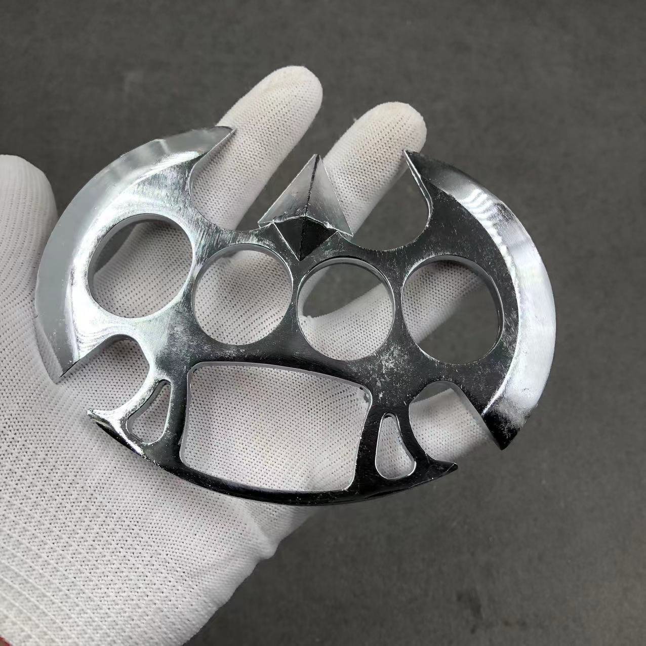 Name: Thickened Four-Finger White Bone Ring--Knuckle DusterMaterial: Zinc AlloySize: Product length about 112mm height 65mm thickness 10mmFinger hole diameter: 23mmWeight: about 128 gramsPackaging: Single transparent neutral OPP bag packaging